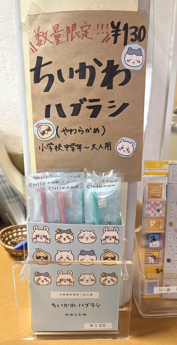 さて、ただ今当院では人気キャラクターの「ちいかわ」ハブラシを数量限定で販売しています。